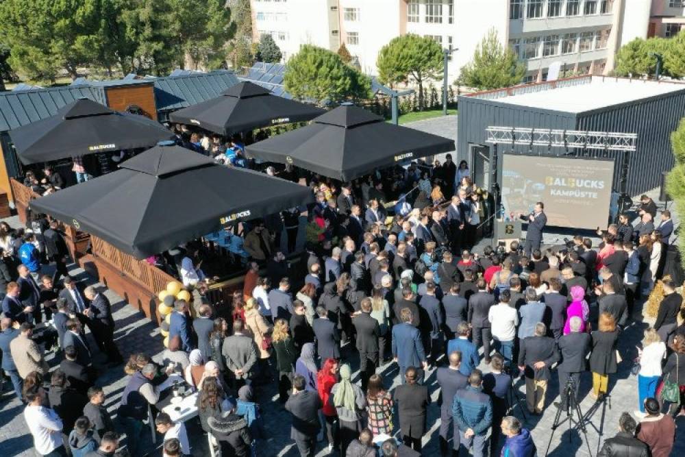 BALIKESİR (İGFA) - Sömestr tatili dönüşü Balıkesir Üniversitesi öğrencilerine BalBucks sürprizi yapan Balıkesir Büyükşehir Belediye Başkanı Yücel Yılmaz, bugün öğrenciler ile birlikte BalBucks’ın resmi açılışını gerçekleştirdi. Balıkesir Büyükşehir Belediye Başkanı Yücel Yılmaz, Zağnos Paşa Camisi Meydanı’ndaki BalBucks’ın ikinci şubesini de Balıkesir Üniversitesi Çağış Kampüsü’ne açtı. Dünyaca ünlü sıcak-soğuk içecekler, sandviç ve tatlılardan oluşan lezzetli ürünleri uygun fiyat politikasıyla vatandaşlara nezih bir ortamda sunması dolayısıyla Türkiye’nin birçok noktasında adından sıkça söz ettiren BalBucks’ın açılışına; Balıkesir Valisi İsmail Ustaoğlu, Balıkesir Büyükşehir Belediye Başkanı Yücel Yılmaz, AK Parti İl Başkanı Mehmet Aydemir, Balıkesir Üniversitesi Rektörü Prof. Dr. Yücel Oğurlu, Balıkesir Gençlik ve Spor İl Müdürü Adem Özalp, AK Parti Altıeylül Belediye Başkan Adayı Mesut Eray ve üniversite öğrencileri katıldı.