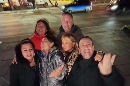 Özgür Aras’ın arkadaş grubu ile bir araya geldiği yemeğin ardından ünlüler sokakta şarkılarla doyasıya eğlendi.